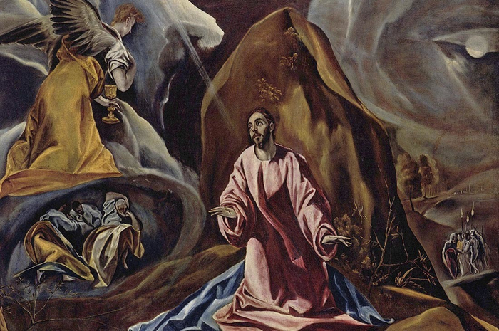 Согласно трем евангелистам, Христос перед своим арестом вместе с 11 учениками пришел в Гефсиманский — он же оливковый — сад в Иерусалиме. Произошло это после тайной вечери. Взяв с собой троих из них — Петра, Иакова и Иоанна, — Иисус отлучился на молитву.