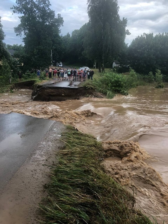 В Минском районе из-за большого потока воды обрушился мост через реку Менка. Из-за этого люди не могут перебраться на другую сторону через реку.
