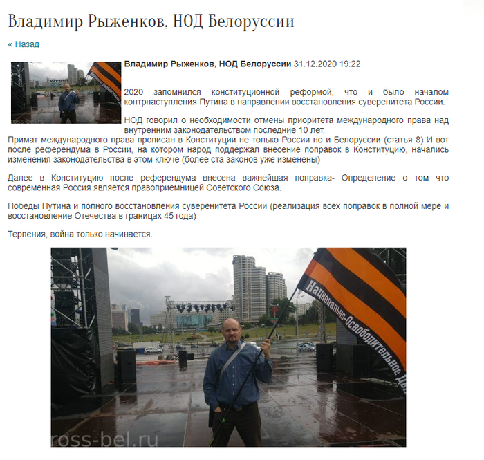 Наконец, одно из "новогодних" поздравлений сайта “Вместе с Россией” от имени Владимира Рыженкова, главы белорусского ответвления так называемого Национально-Освободительного Движения, желает “победы Путина и полного восстановления суверенитета России… в границах 45 года”. И многозначно добавляет в конце: “Терпения, война только начинается”.