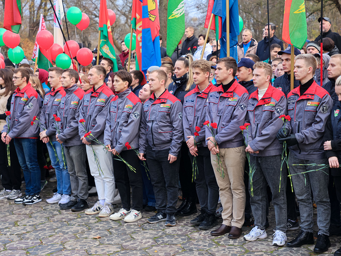 106-ю годовщину Октябрьской революции в Гомеле встретили торжественным митингом на главной площади города, носящей имя Владимира Ильича Ленина. У памятника вождю мирового пролетариата собрались сотни жителей областного центра, для которых, как и в далеком 1917 году, все так же важны такие идеалы, как справедливость, труд, и равенство.