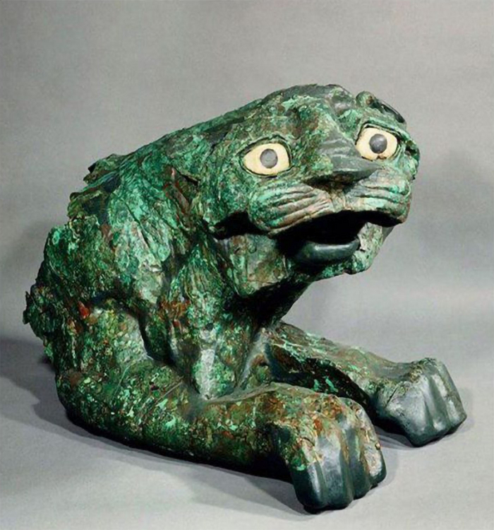два самых несчастных в мире льва, которых обнаружили во время раскопок в сирийском святилище. Львы были поставлены бок о бок на подиуме и, казалось, наблюдали за посетителями. Изображена только передняя часть животных: задняя часть скульптур была вмонтирована в стену, чтобы они выглядели так, будто они вылезают из стены. Глазки из известняка и сланца придают жалостности. Если ты зеленый лев, вряд ли жизнь будет к тебе благосклонна :(