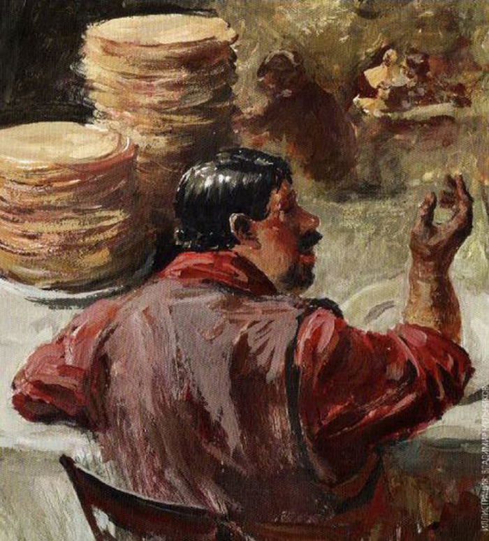 «Как, однако, много подают в русских ресторанах! — подумал француз, глядя, как сосед поливает свои блины горячим маслом. — Пять блинов! Разве один человек может съесть так много теста?»