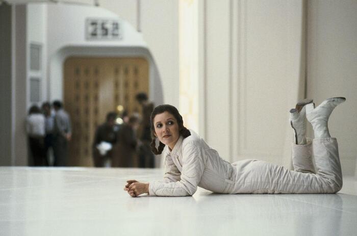 5) Кэрри Фишер позирует для промо "Звёздные войны. Эпизод V: Империя наносит ответный удар" (1980). Актрисе неоднократно приходилось стоять на ящиках при съёмках сцен с Харрисоном Фордом, чтобы их разница в росте не бросалась зрителям в глаза. Рост Кэри был около 155 см, тогда как рост Форда составляет 182 см.