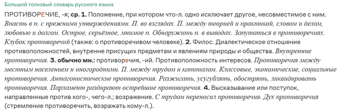 Если что, для буквоедов, противоречие — не вражда и даже не противостояние. Противоречие. Т. е. обе позиции не могут сосуществовать вместе без изменений. Они могут и зачастую будут сопровождаться борьбой, но её характер может быть разный.