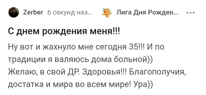 P.S. - теги «поздравление» и «Лига дня рождения», как и вся Лига Дня Рождения, доступны для игнора )