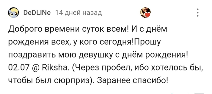 P.S. Если хотите записаться на поздравления, заходите в комментарии. Если вы хотите получить поздравление снова, записывайтесь в комментариях.