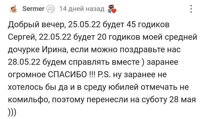 А так же хочу попросить прощения и предупредить, что не смогу поздравить