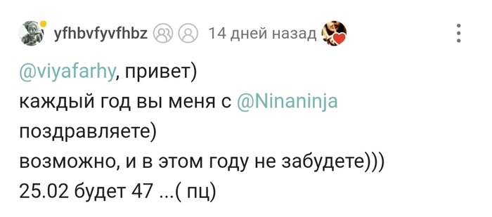 А так же хочу попросить прощения и предупредить, что не смогу поздравить