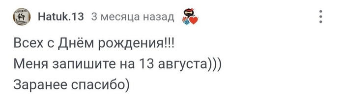P.S. - место для того, чтобы вы оставляли свою дату рождения и не остались без нашего поздравления - в комментариях под любым из моих постов ) ДАЖЕ ЕСЛИ вы уже были поздравлены нами и хотите повторить, черканите дату ещё раз, пожалуйста )