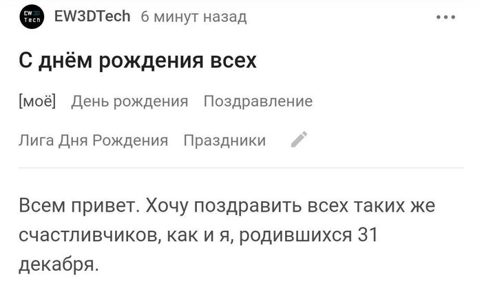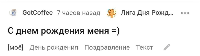 P.S. - теги «поздравление» и «Лига дня рождения», как и вся Лига Дня Рождения, доступны для игнора )