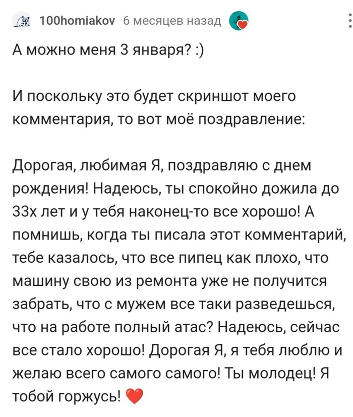 @Ninaninja спасибо тебе за то, что была всегда рядом в этом году, надеюсь, это не изменится ) Я тебя безмерно ценю, бесконечно уважаю и очень люблю!
