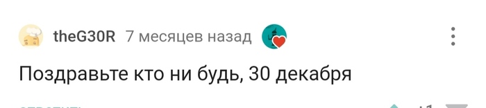 Всем привет. Хочу поздравить всех таких же счастливчиков, как и я, родившихся 31 декабря.