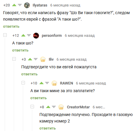 499 haalward Чёрный юмор Тяжело на пикабу евреям 4 года назад #comment_181748188 Евреи Юмор Черный юмор Комментарии Скриншот 7 1 1 Ещё 0