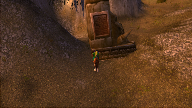 Это было близко. Скрин смог сделать только, когда Стежок отстал от персонажа. А момент, когда он бежит прямо позади – тот еще адреналин. И думаешь, только бы не сбросил случайный моб с коня пока несешься через чащу.