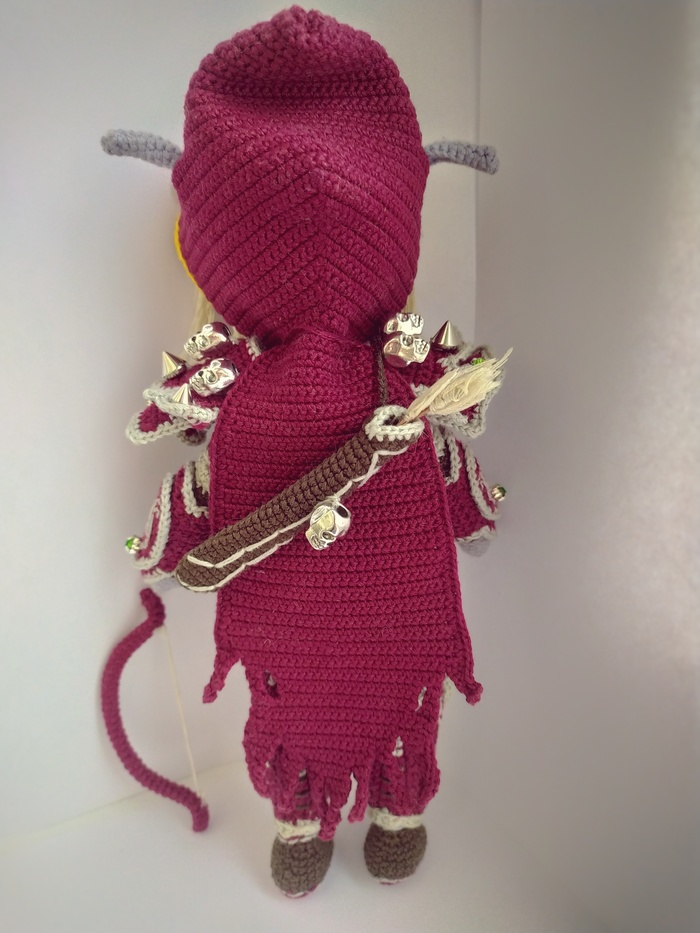 Схему придумывала по ходу, мк нет. Материалы: хлопковая пряжа, стразы, металлические бусины, проволочный каркас. Рост игрушки - 25 см.