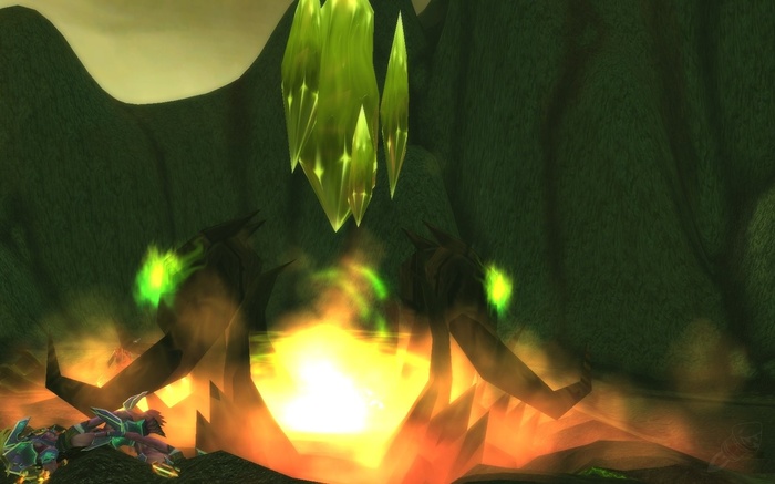 Селин Огненное Сердце, старший офицер Кель’таса, вставший на пути, нес на себе явный отпечаток использования силы Скверны, кожа его была подобна коже эредаров, а изо лба росли настоящие рога, прямо как у охотников за демонами, тренируемых Иллиданом.