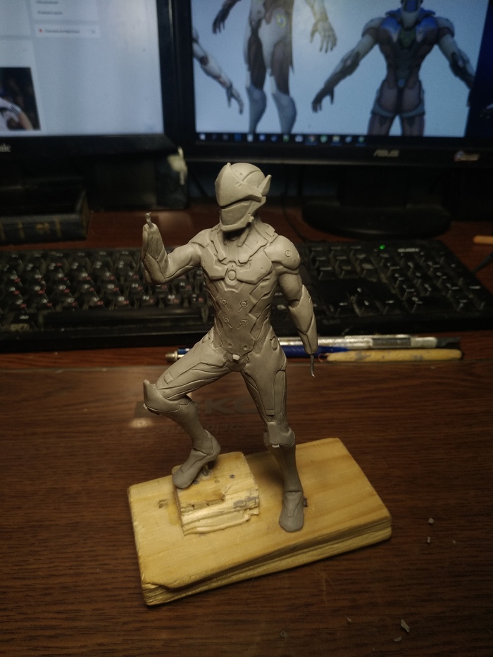 Сделал фигурку Гендзи из Overwatch. В общем на работу потратил ~месяц не особо интенсивной работы. Материал как всегда полимерная глина(Sculpey frim), в высоту(вместе с подставкой) получилось 15см. Покраска не планируется.