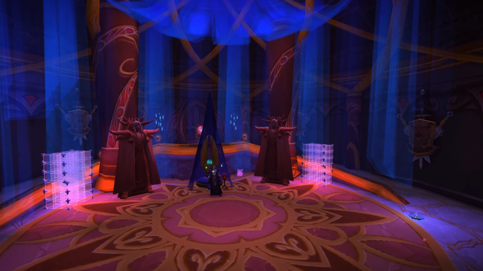 После победы в Святилище появились Велен и Лиадрин, сопровождаемые большим количеством воинов Расколотого Солнца. «Смертные герои!», — раздался могучий голос Пророка над сводами Святилища. «Ваша победа была давно предсказана! Злобный крик моего поверженного брата будет услышан по всей Вселенной, неся новую надежду тем, кто ещё не склонился перед Пылающим Легионом. Теперь падение Легиона ближе, чем когда-либо, так что гордитесь тем, что с вашей помощью миры спасены от пламени. Этот день, в который что-то заканчивается навсегда. Это день, возвещающий начало нового пути…»