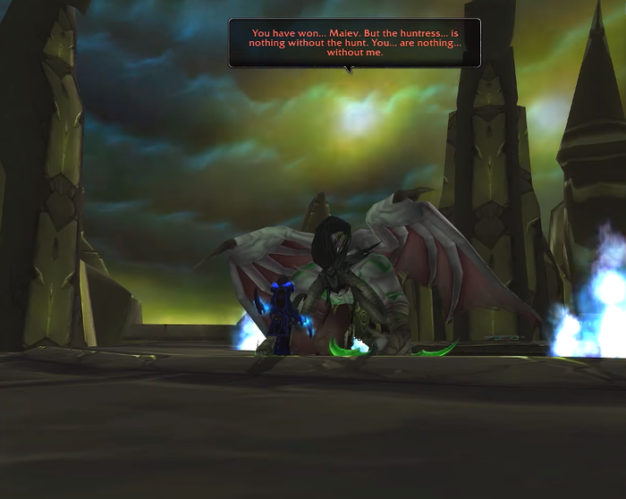 Но охотник не мог жить без жертвы, и Маейв, в один момент лишённая смысла своего существования, впервые за свою жизнь почувствовала себя опустошённой. Но Акама, в отличие от ночной эльфийки, был воодушевлён, поклявшись, что свет вновь озарит эти мрачные своды.