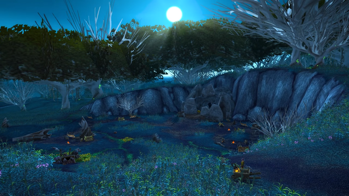 На фоне битвы с нежитью неожиданно возникли проблемы с ночными эльфами, приплывшими сюда с небольшим отрядом из далёкого Калимдора. Часть из них обосновалась лагерем в Ан'дароте, древнем узле лей-линий, и стойко защищали свой лагерь от представителей Орды. В центре лагеря был обнаружен предмет, похожий на магически выращенное дерево с наполненным силой шаром наверху! Судя по всему, это был какой-то лунный кристалл, необходимый для шпионажа, поэтому очень важно было узнать, о дальнейших планах калдорай. В Ан'дароте никаких планов обнаружено не было, но они могли быть на острове Шаландис, где находился их опорный пункт.