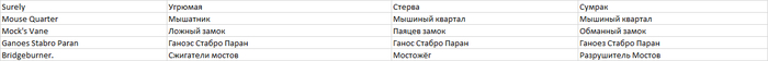 Ну и на последок ещё одна табличка с переводом имён собственных