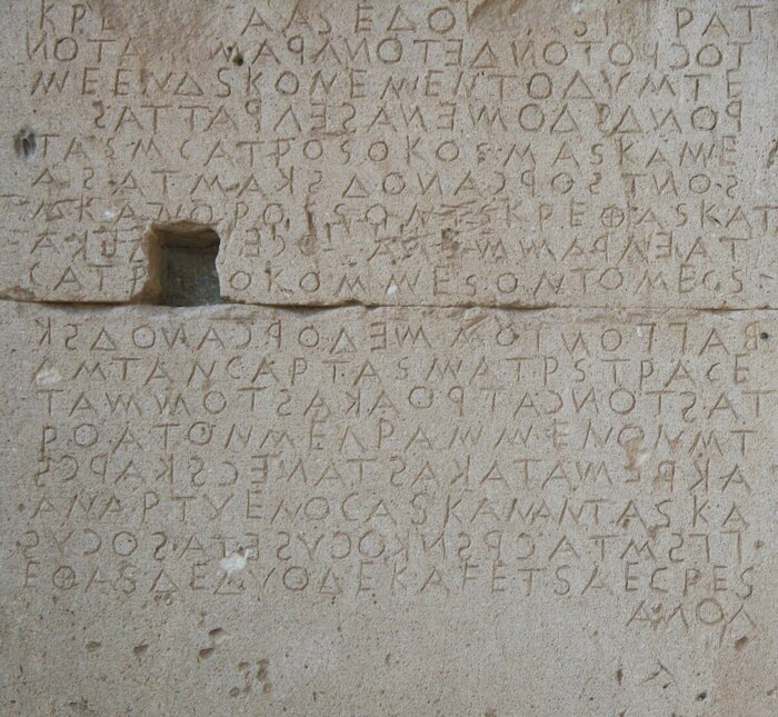 Этот способ называется «бустрофедон». Нам он кажется странным и неудобным, а для древних это было нормально, естественно. И знаете, почему? Потому что именно так движется пахарь за плугом по полю! Вспашет одну борозду, развернётся и ведёт борозду в обратную сторону!