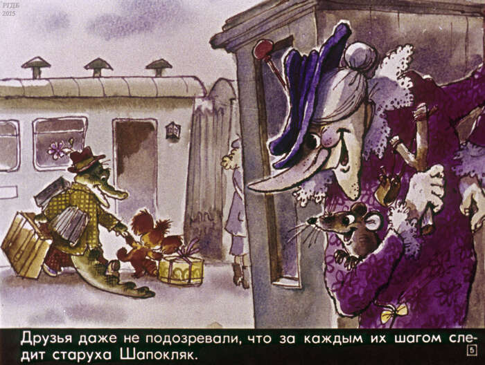 К примеру, в однименном диафильме у "звездного" тандема Савченко-Степанцев старуха Шапокляк неотличима от мультипликационной, разве что щеголяет в шапокляке, то есть складном цилиндре.