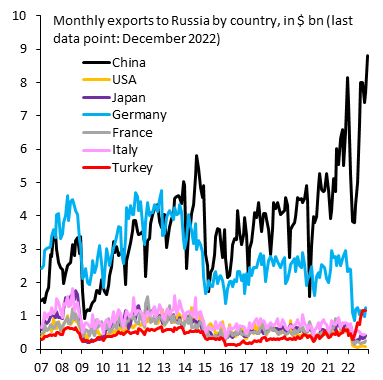 Рост экспорта пришёлся на годы конфронтации России с Западом и СВО. Последнюю автор клеймит последними словами. Без мантры про зловредного Путина не обходится ни один значимый немецкий публицист. Не удивительно: даже понимание (но не одобрение) действий РФ, высказанное публично, может привести оратора за решётку.