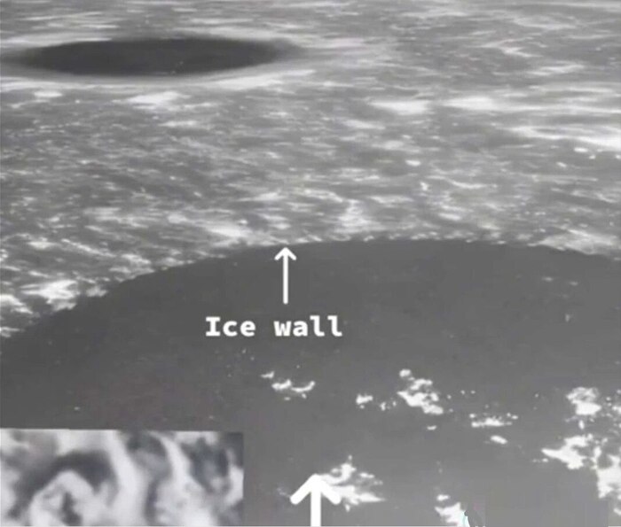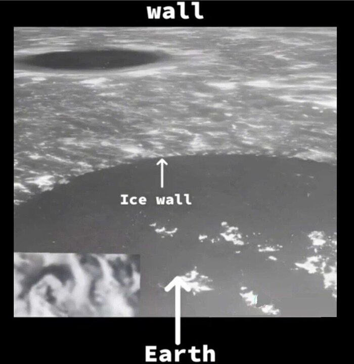 Надпись гласит - вы можете видеть землю ЗА ЛЕДЯНОЙ СТЕНОЙ, видимо земли а не землю.