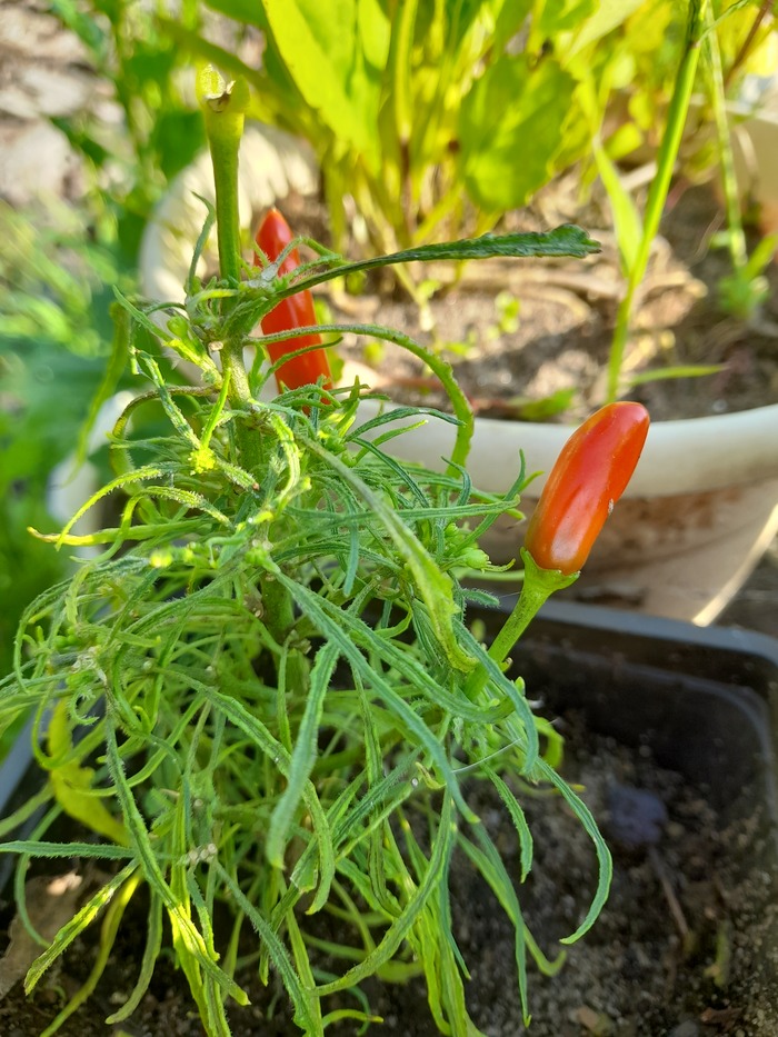 Собран первый урожай с одного куста, названия не знаю, так как источник был куплен в магазине в виде плода под названием "Тайский перец", понравилась острота вот и проростил семечку.