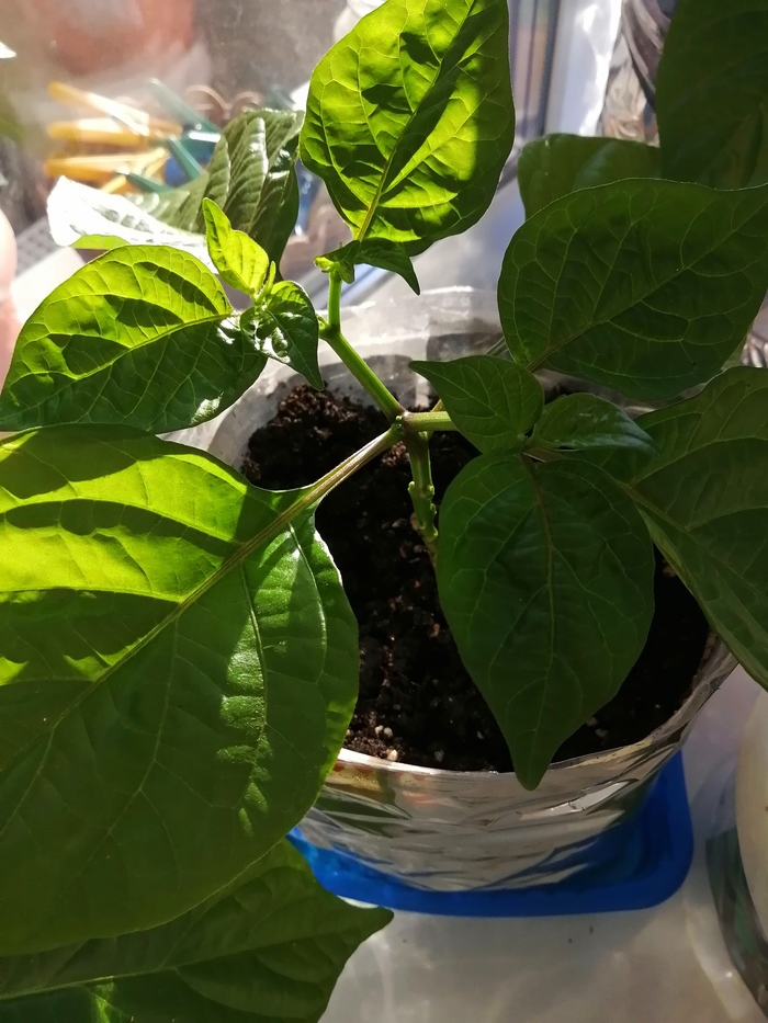 Перцы на подоконнике, под лампой, боролись всю зиму за жизнь, а с первыми лучами весеннего солнышка ломанулись в рост.