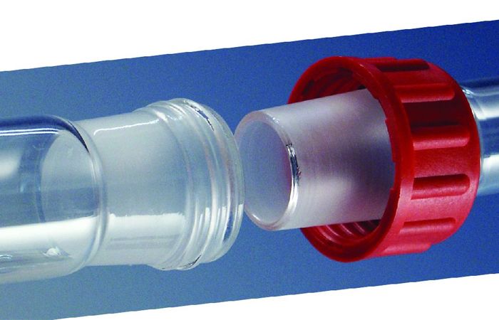 Представьте себе такую привычную для русского человека вещь, как бутылка водки. Для непьющих - стеклянная бутылка лимонада. Как эта бутылка закрывается? Резьбовой пробкой! Собственно, химики никак не могли пройти мимо такого очевидного способа соединения, и различные баночки с резьбовыми крышками давно вошли в химический обиход. Позже резьбовые крышки, штуцера и прочие переходники начали накручивать и на пробирки, и на колбы - удобно и надежно. Сейчас есть единый стандарт стеклянной резьбы, называется GL.