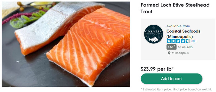 В первом нагугленном супермаркете морепродуктов в Миннеаполисе, в полутора сотнях миль от г. Дулут, что на берегу Верхнего, фунт филе этой форели со всеми наценками стоит $24. Плюс не указанный по американскому обычаю НДС.