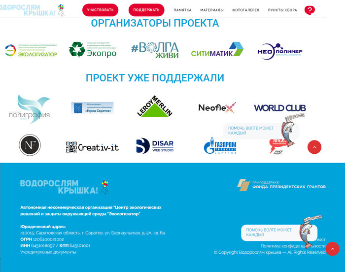 На сайте «Водорослям крышка» много рекламы и лозунгов, но нет никаких контактов – только юридический адрес и е-мейл техподдержки, т.е. айтишника, которому всё по фигу.