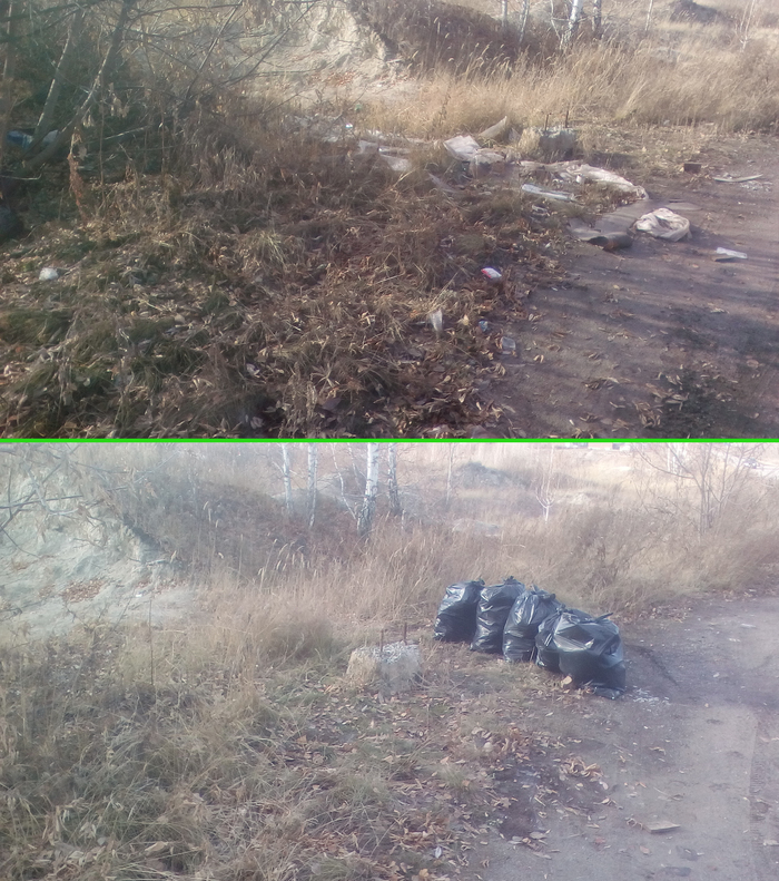 Я продолжил выносить старые мешки из леса. Так как пакеты у меня кончились, найденный по дороге мусор складировал в несколько куч.
