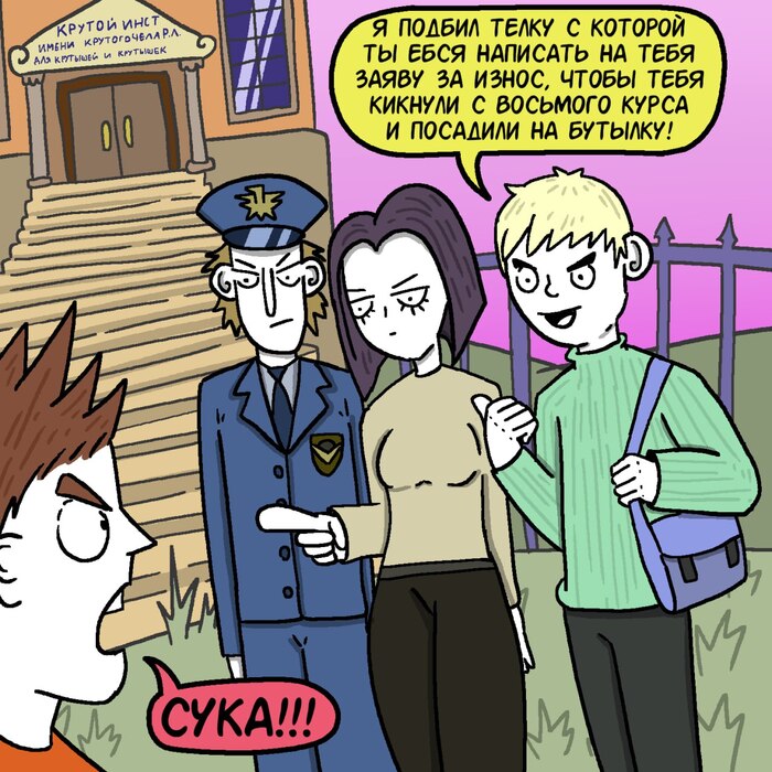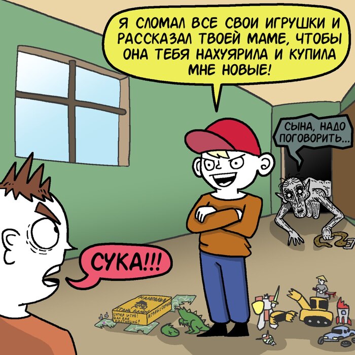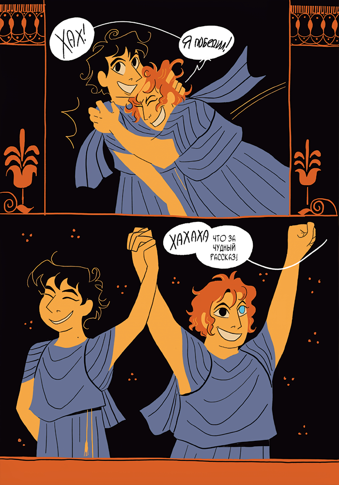 А ещё я перестала рубить надвое страницы. Весь комикс, так то, в оригинале выкладывается цельными разворотами, но меня только ща чёрт дёрнул не рубить то, что рубить не надо, так что, если вам кажется, что некоторые страницы можно объединить и получить красивую картинку побольше - вам не кажется.