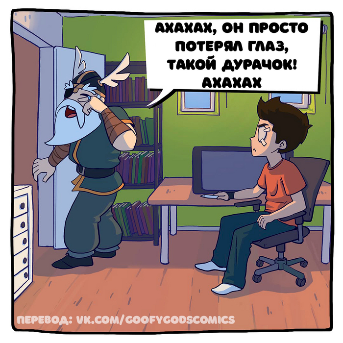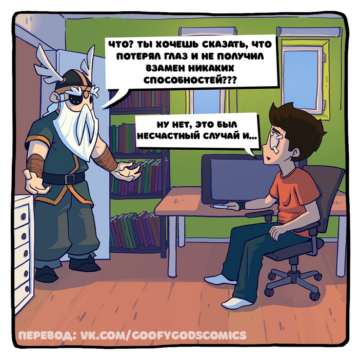 О, и об этом комиксе... Вы, наверное, знаете норвежский миф, в котором Один пожертвовал глазом ради бесконечной мудрости. К сожалению, я не думаю, что мне так повезло - я все еще здесь и рисую глупые комиксы, чтобы (надеюсь) рассмешить вас. 😆