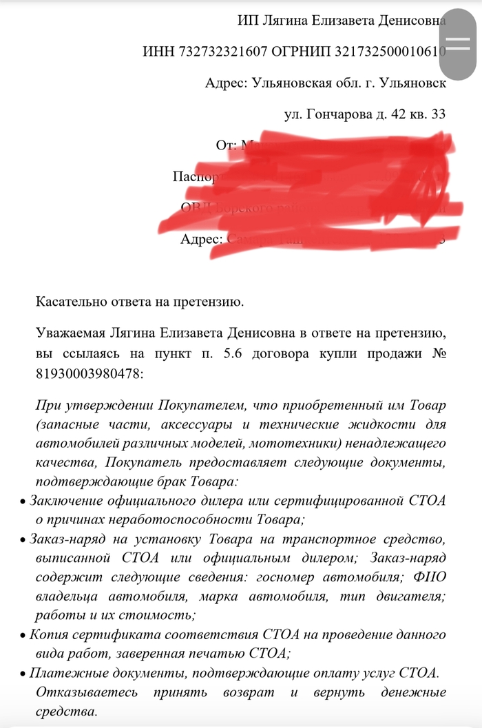 На данный момент написаны заявления в МВД через онлайн-форму, в Роспотребнадзор через онлайн-форму, в налоговую через госуслуги. Старт борьбы за мои потребительские права.