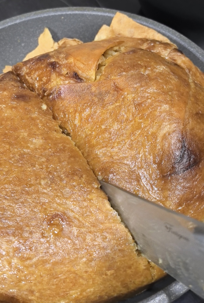 выкладываем всё вышенакрошенное в казан/кастрюлю слоями, в моём случае получилось так - половина всего лука на дно, следом слой мяса- подсолил, приправка, сверху остаток лука, затем остаток мяса, снова соль, перец, приправка, нарезанная кинза, чеснок распихать. И верхние слои сладкий перец, кабачок, баклажан, резаные помидоры из банки, целый острый перчик.