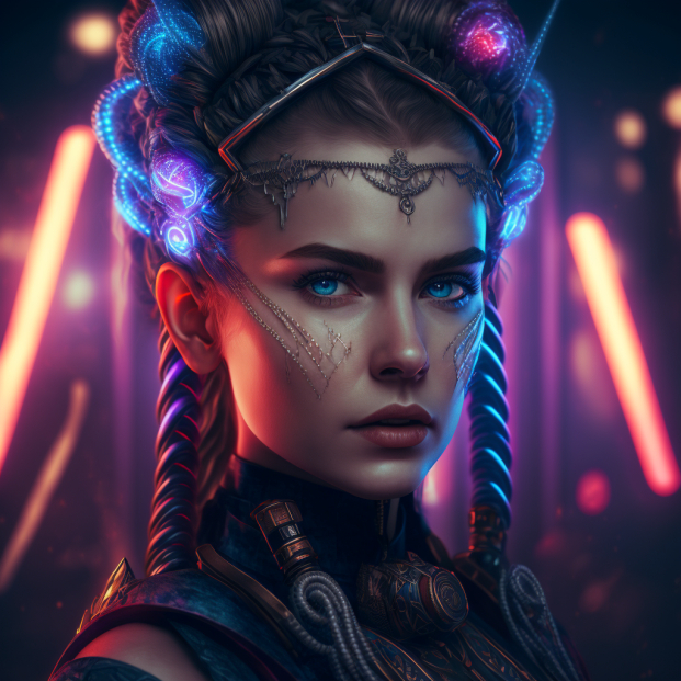 Русские киберпанк-девушки (кокошники и косы от нейросети)1