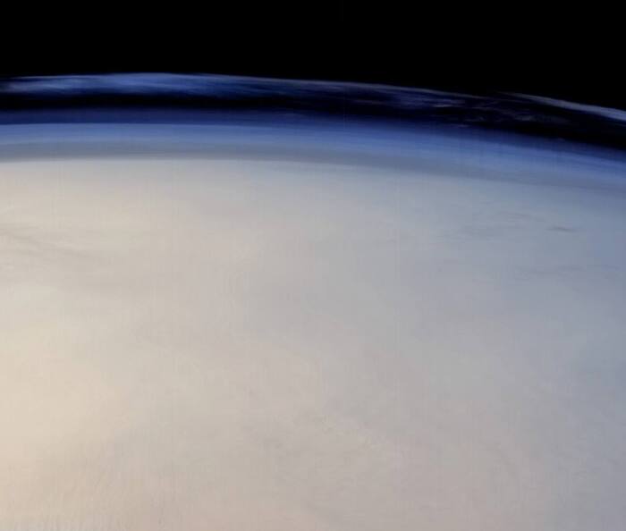 На снимке вместо поверхности планеты виден облачный пояс афелия, сезонное явление, характерное для лета в северном полушарии, когда Марс находится на наибольшем расстоянии от Солнца. В это время над высоким нагорьем Тарсис каждый вечер формируются облака, при этом вершина горы выглядывает сквозь их слой и видна с орбиты