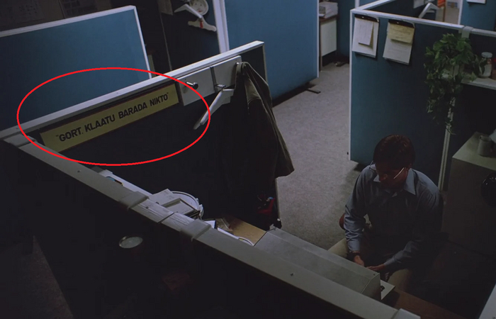 На стене кабинки Алана написано «Gort, Klaatu barada nikto». Это фраза из научно-фантастического фильма 1951 года «День, когда остановилась Земля», которая использовалась для предотвращения катастрофы. Впоследствии эту же фразу должен был произнести Эш в третьем фильме про зловещих мертвецов, но частично забыл слова.