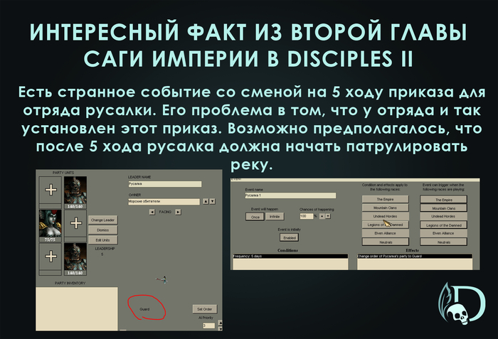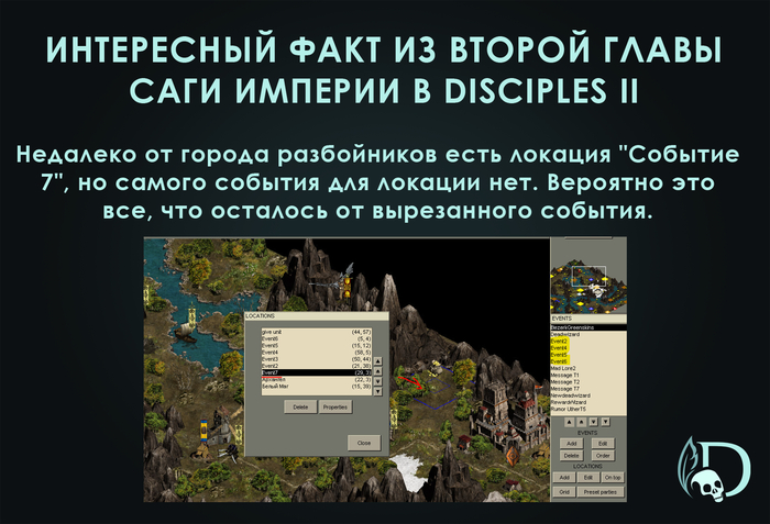 Составил события первой части Disciples в хронологическом порядке. Ориентировался на события саг, которые упоминаются в других сагах, например, гномы только после того, как получат совет от Колодца Судьбы узнают о гибели верховного короля или то, что демоны похищают императрицу пока люди сражаются с нежитью и т.д.