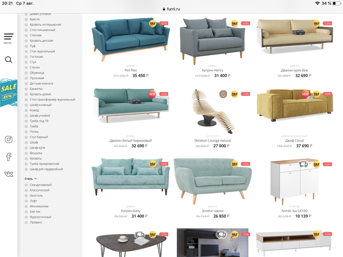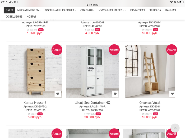 Занимаюсь подбором мебели в новую квартиру, но покупать ее буду не скоро, просто пока подбор вариантов. Страдаю, ибо сейчас много где есть скидки, а когда я буду покупать, по закону подлости их не будет)