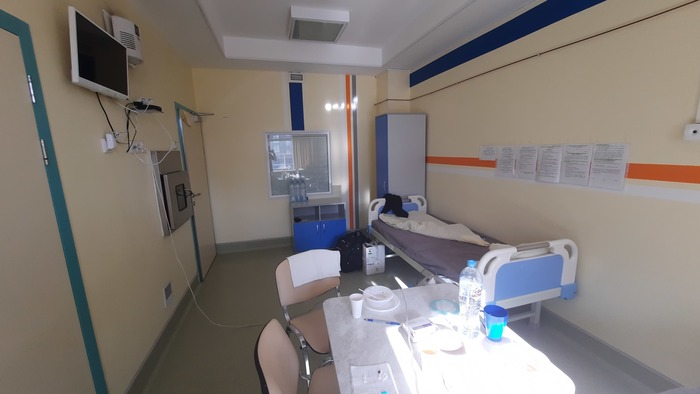 это, чтоб вы знали - по сути центр питера. ковидная палата на 3 человек. утром я проснулся со шпаклёвкой на одеяле. по потолку гоняют тараканы. на завтрак кусок хлеба, микроскопический кусок масла и грамм 150 непонятной каши. короче, включив своё обаяние и дерзость - добился перевода в тот же день в другой филиал боткинской больницы на пискарёвском проспекте.