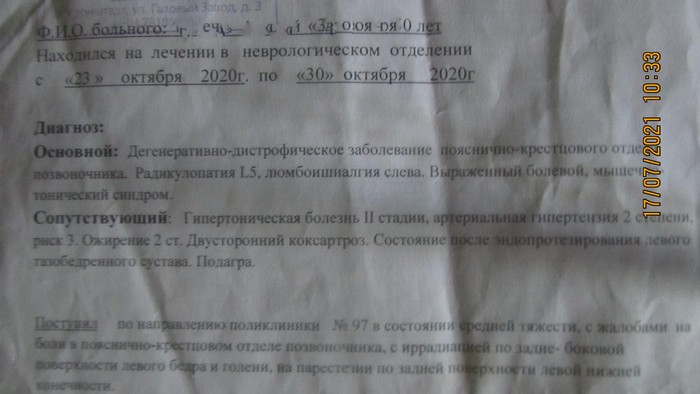 Этот день был просто ужасен. Ног (а также всего, что между ними) я не чувствовал примерно до 15:00. В 12:00 я понял, что ужасно хочу помочиться. Сделать своими силами это было невозможно, вызвал медсестру, попросил поставить катетер. Она меня отговаривала, мол, пробуйте в утку (в последствии выяснилось, что она просто не умела это делать). Я с этой уткой обнимался ещё ближайший час-полтора. Поняв, что все мои попытки тщетны, а боль в районе мочевого заставляла лезть на потолок, я снова вызвал медсестру, которая позвала моего врача.