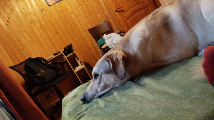 У нас очень эмоциональная собака, сейчас она живет с тёщей на даче. В выходные мы стараемся с ним выходить на поле, там он скачет между зарослей, возможно извазюкается в грязи у речки. Но в это момент он счастлив.