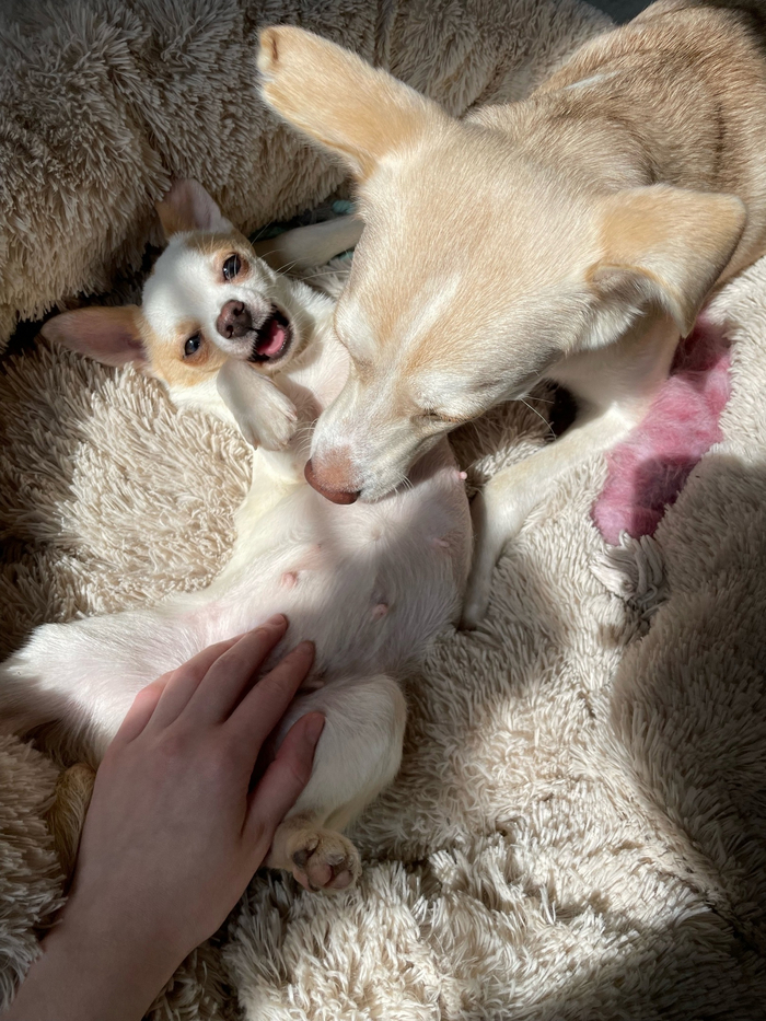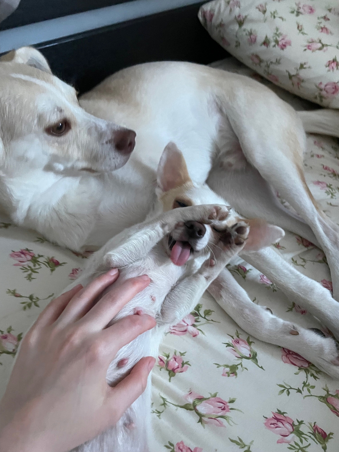 Мне написала волонтер, у которой мы взяли Шайна из приюта, что не могли бы мы хотя бы на передержку кого-нибудь взять. Согласилась на какую-нибудь маленькую суку собаку женского пола, остальное без разницы. Шайн не любит кобелей на своей территории, во дворе тоже больше с девками дружит. Привезли дрожащее это, с закосом под чихуахуа и желтой задницей от въевшейся мочи. Видимо сидела в клетке и ходила под себя.