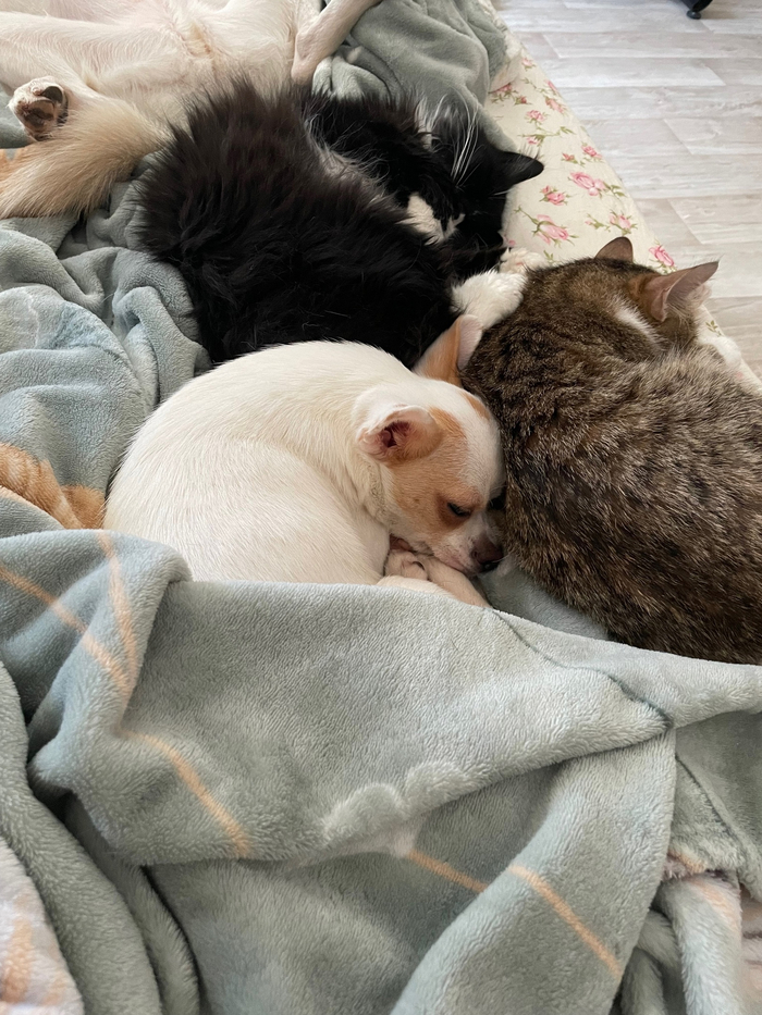 В общем, пока проблемы есть, но, в целом, быстро учится. Ходит и на пеленку и на улицу, ей двухразового выгула мало, как мелкой собаке. Как жара спадет пойдем на кастрацию. Из минусов все еще не отучили воровать кошачьи какашки, Шайну на это потребовалось пару месяцев. Да и пока толком ей стабильное питание не подобрали, там она ела отходы из детского садика, а Тьма и Шайн на сыроедении. Думаю, как стабильно подберется питание, она перестанет какашки таскать. Ну и синдром вахтерши, соседи всегда заходят в предбанник с озвучкой. Говорят это частая проблема маленьких собак, но с апреля стало значительно лучше. Теперь тявкает пару раз ради приличия, раньше заливалась лаем как-будто в дверь кто-то ломится. Чужим людей пока не подпускает и сама не подходит, есть проблемы с доверием.