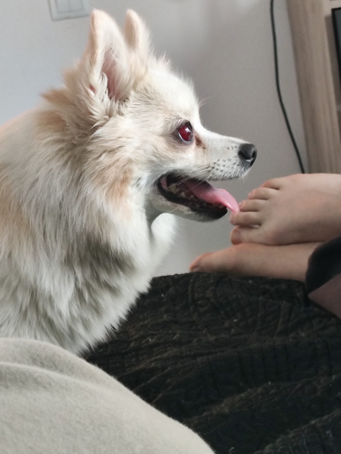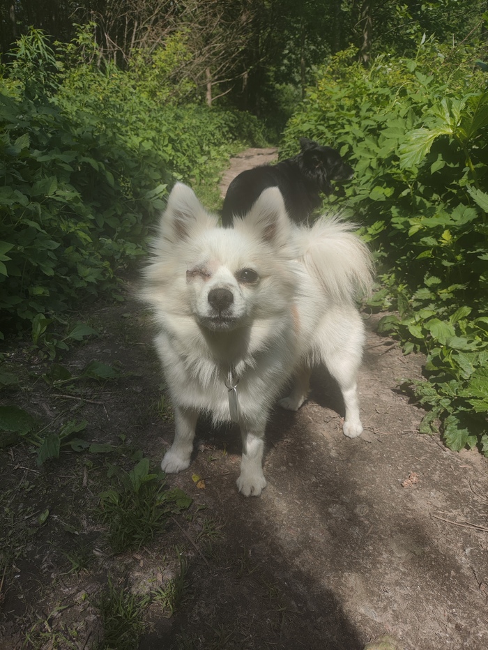 К сожалению, у неё со щенячества был нюанс - врождённая катаракта на правом глазу, которая активно развивалась и в год ей поставили искусственный хрусталик (прямо как у людей). Но если люди спокойно выдерживают период восстановления, но сгусток энергии собачьего типа ещё в клинике при выходе из наркоза умудрилась удариться головой о клетку так, что случилось кровоизлияние и пришлось дополнительно промывать глаз. Но, в целом, всё прошло удачно и на n лет мы забыли про офтальмолога. Но проблемы с сосудами в глазу нас не забыли, к сожалению.